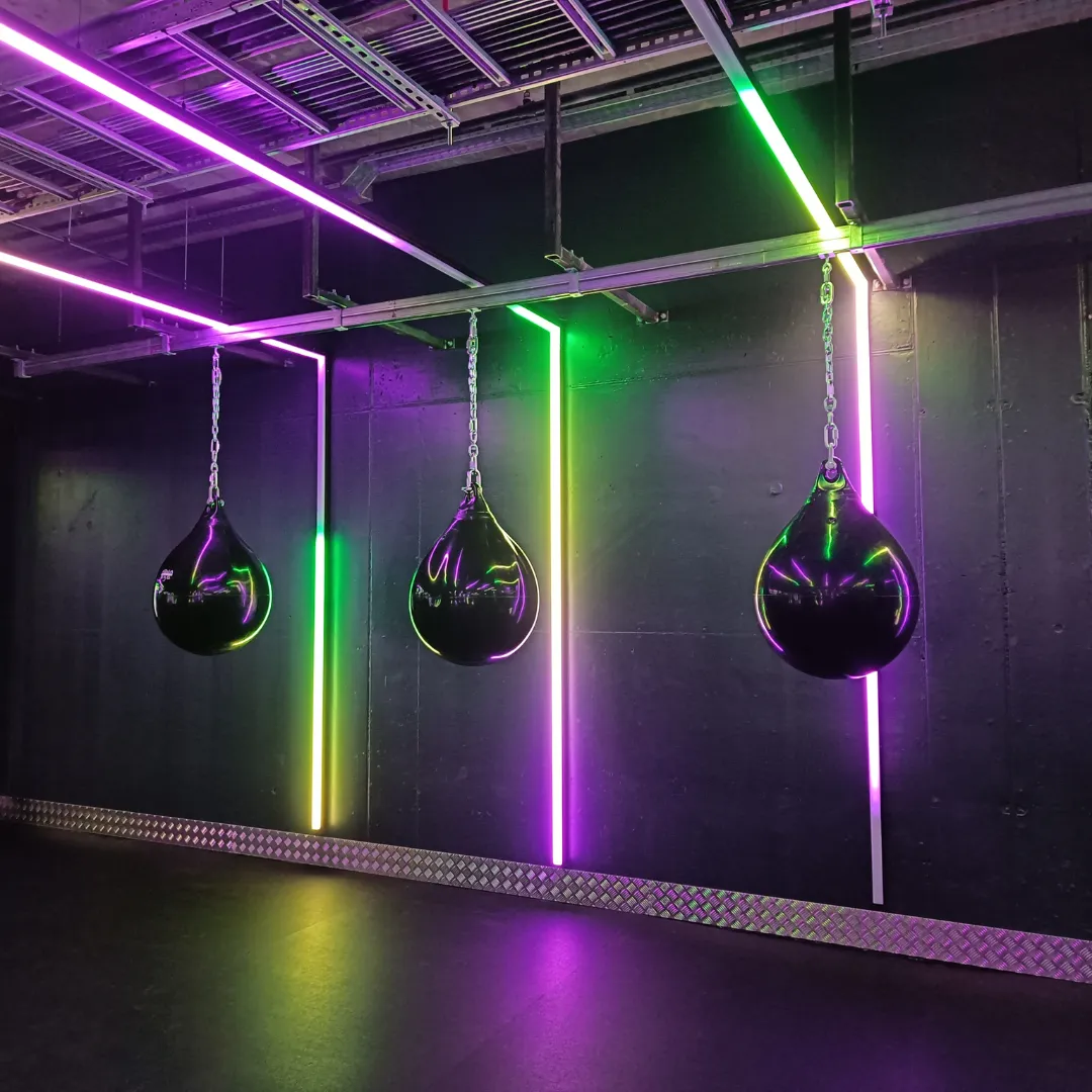 Dynamic & Music-Responsive Lighting – Immersive lighting that reacts to music and movement for classes and group training spaces.