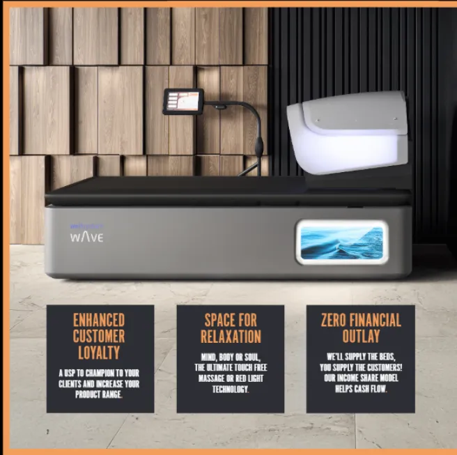 Hydrojet Massage Systems – High-performance water-based massage beds providing relaxation and recovery without the need for staff supervision.